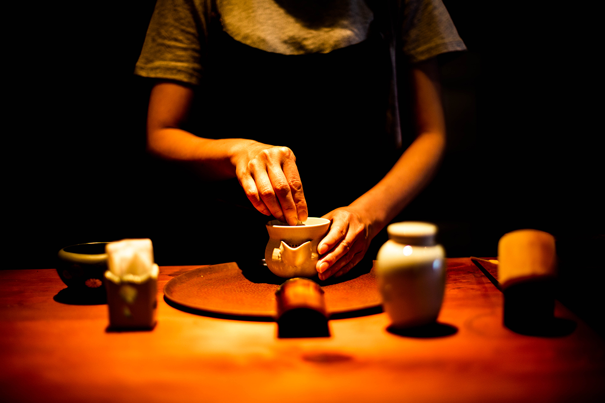 茶葉を急須に入れる。
